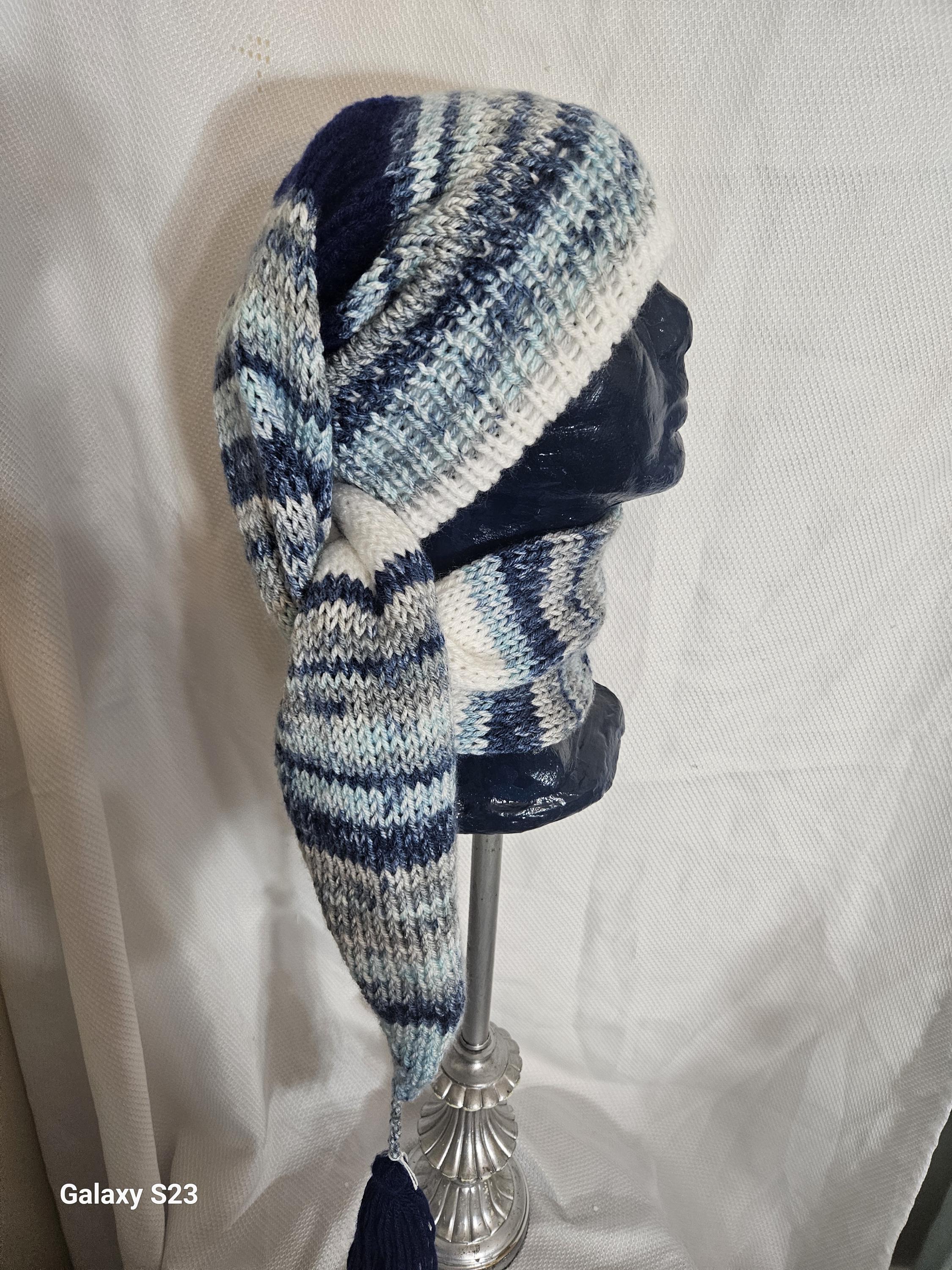 Extra Long stocking hats for extra protection from the harsh cold. The band is double knitted for extra ear protection.
