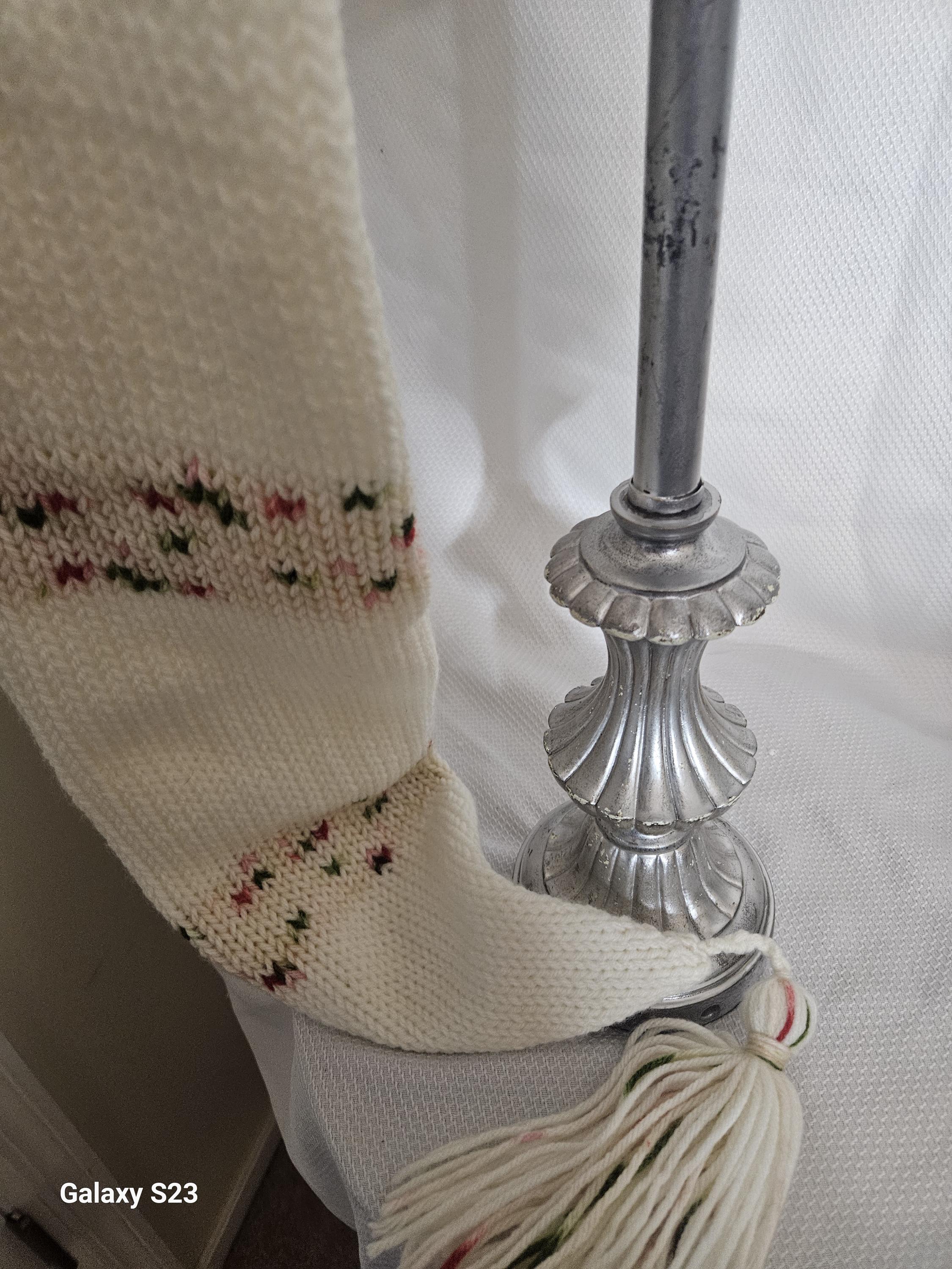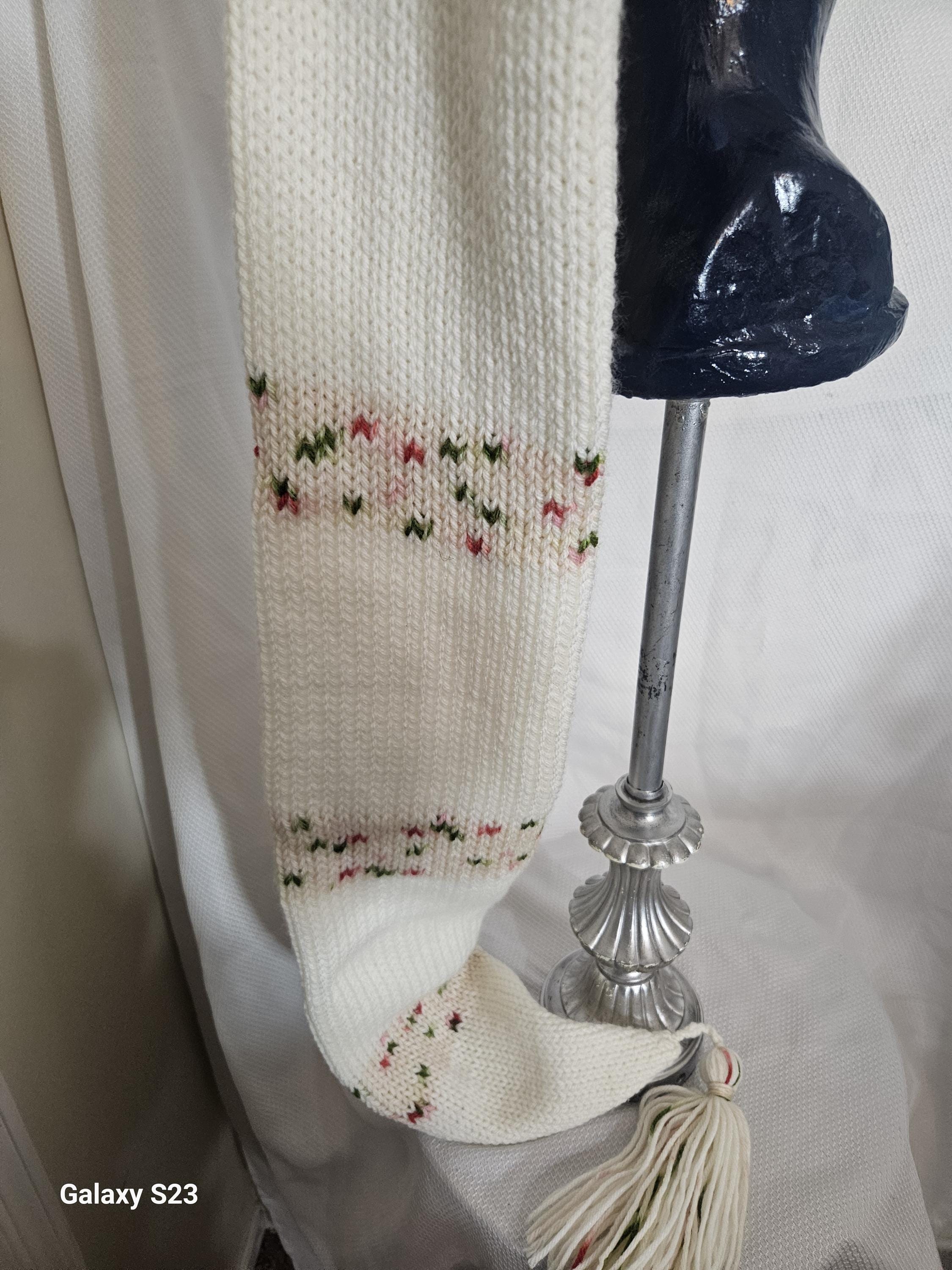 The Color is Merry Mingle (Hunter green and Burgandy) and Ivory length is 45" and matching tassel
