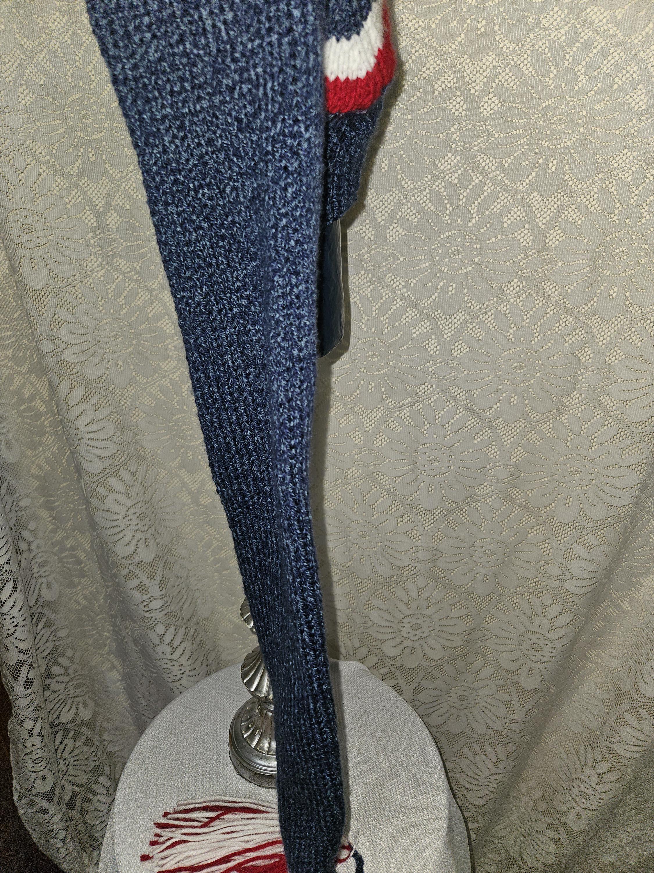 The Color is blue berry buckle with deep red and white stripe the length is 40" and matching tassel