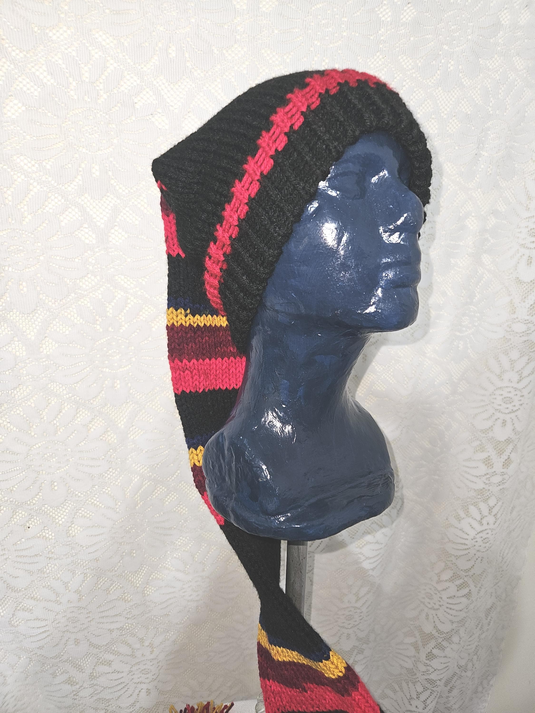 Extra Long stocking hats for extra protection from the harsh cold. The band is double knitted for extra ear protection.