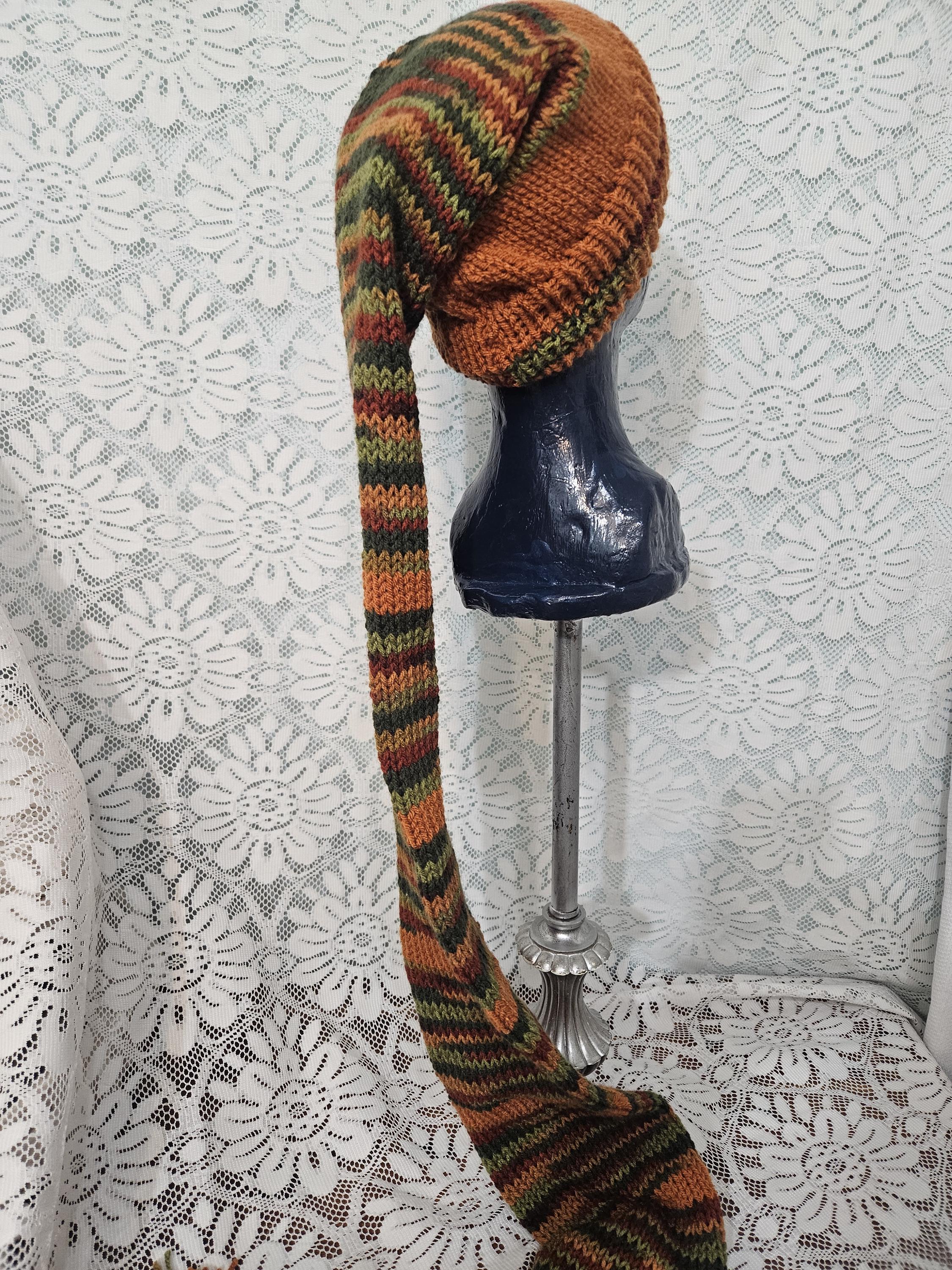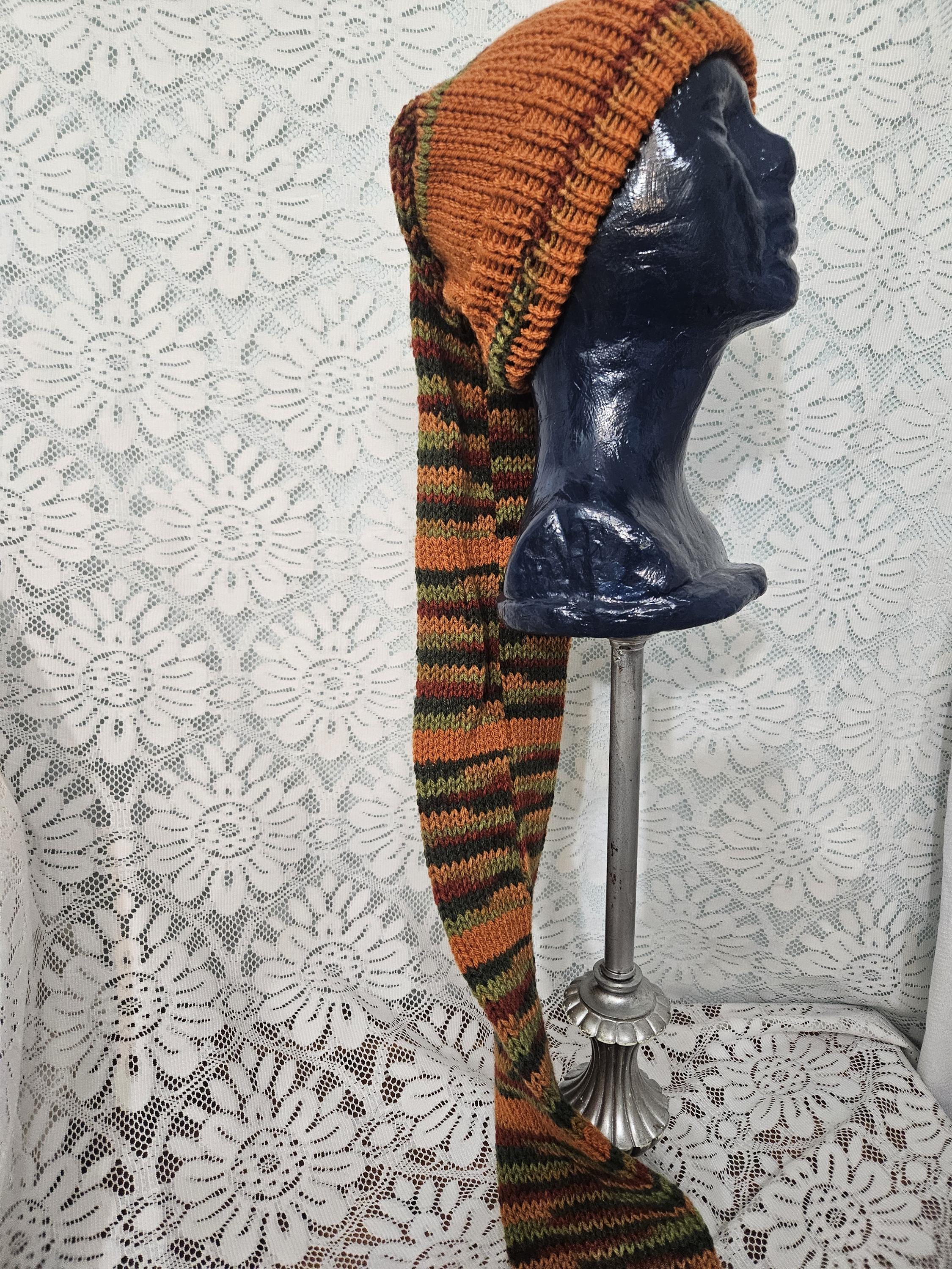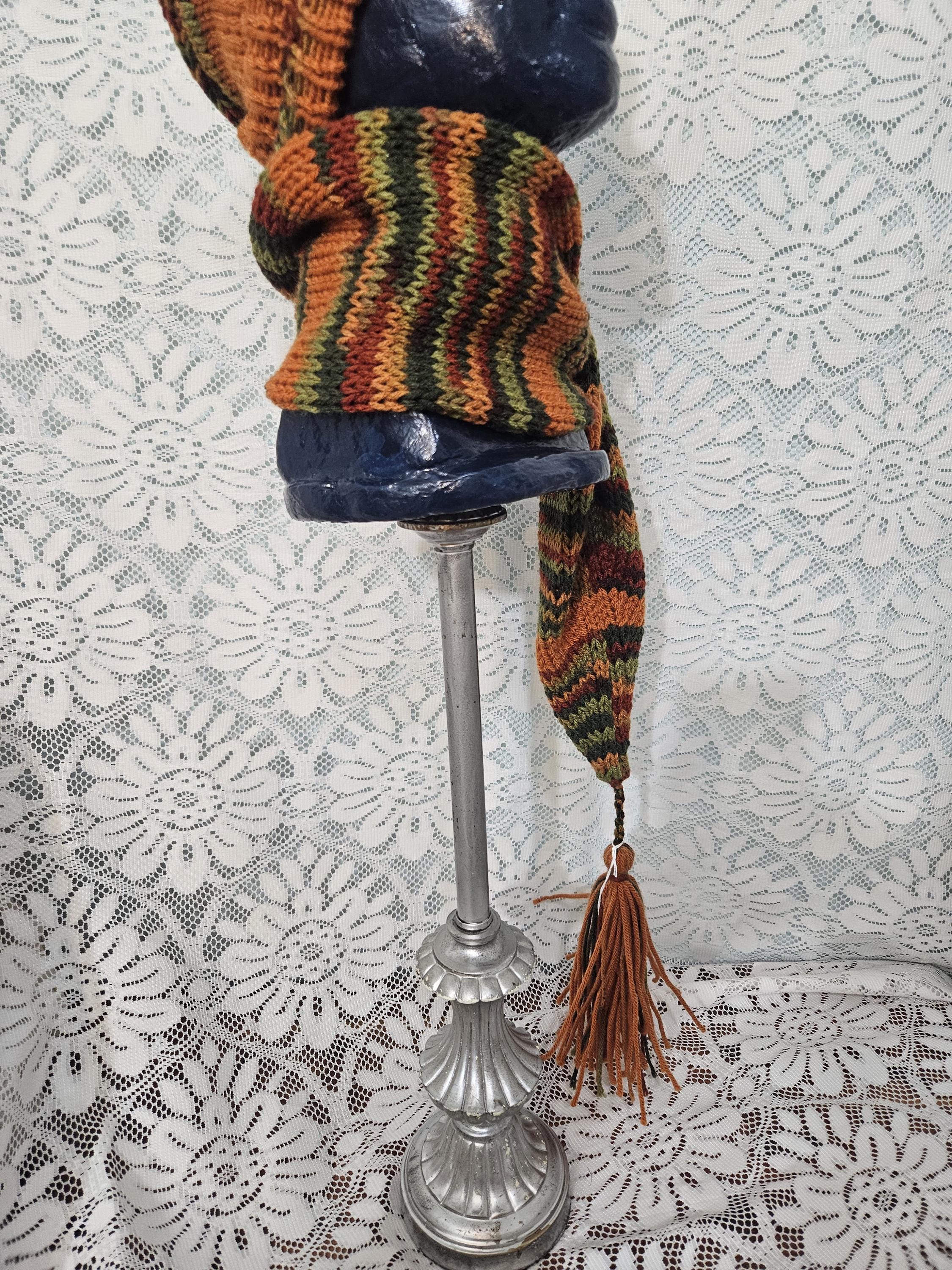 This hat is for a man, woman or child, A hat and scarf all in one a SCRATS