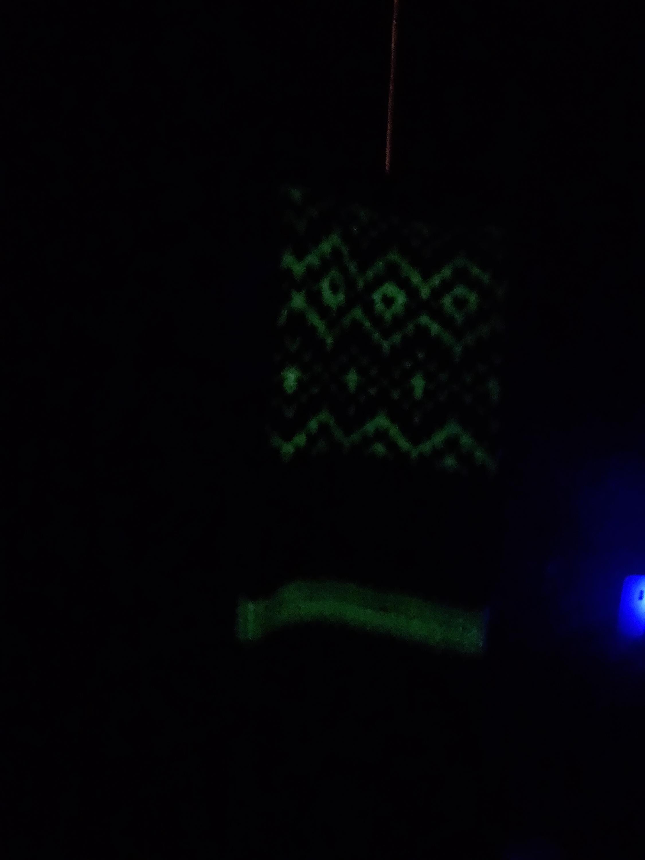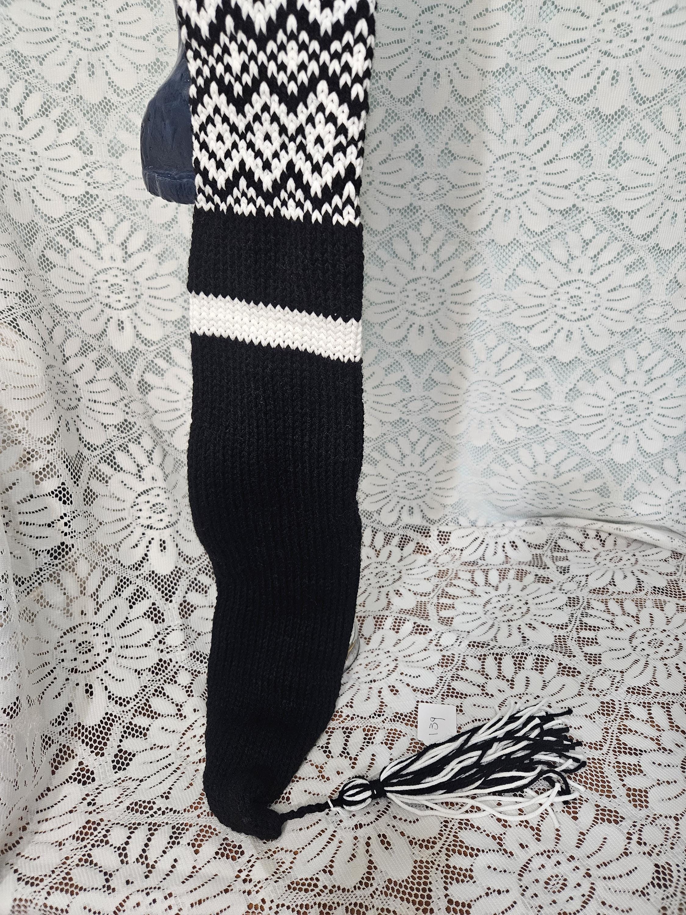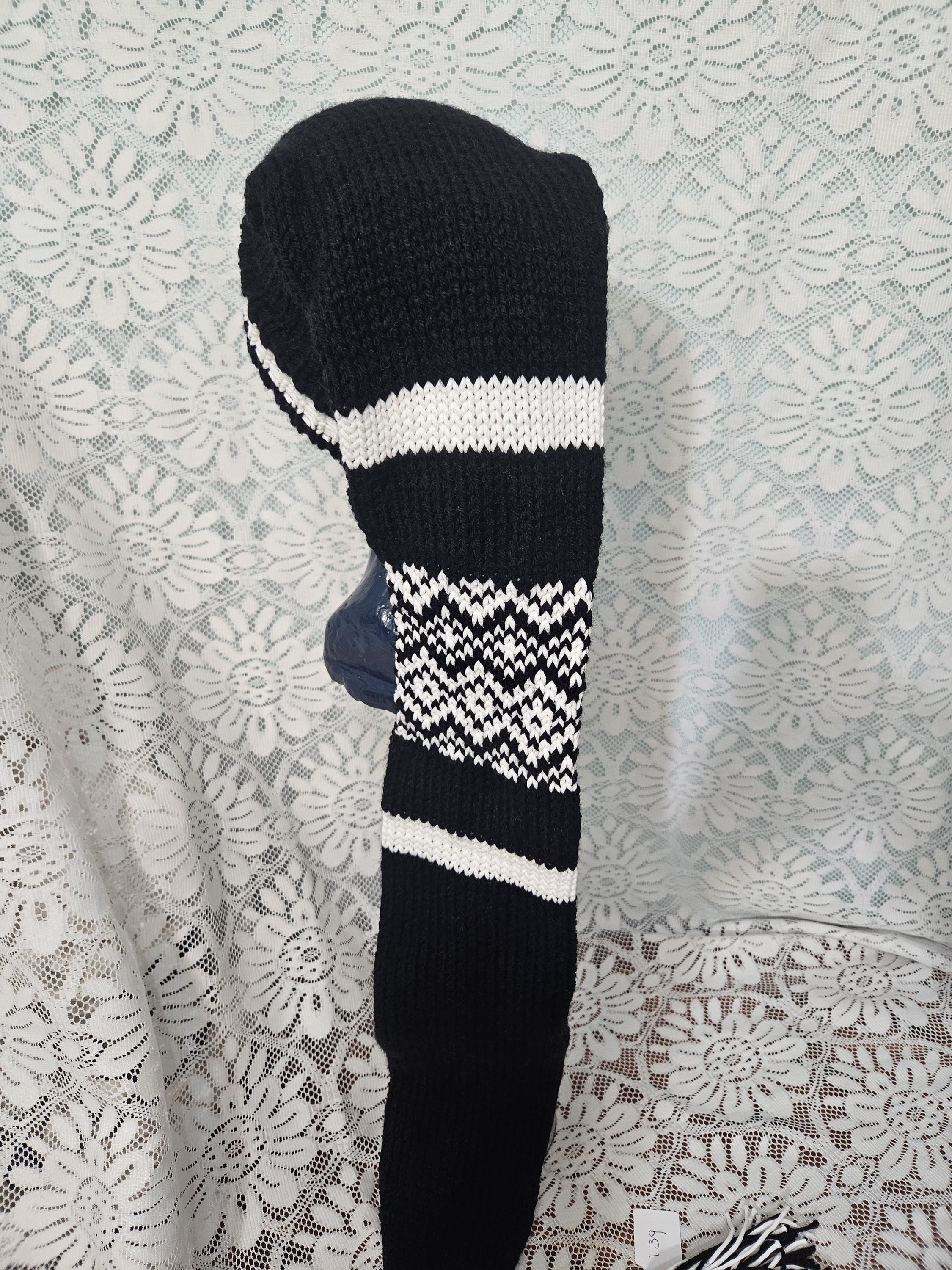 This is a pre-made hat made for Man or woman. The main color is Black with White glow in the dark yarn